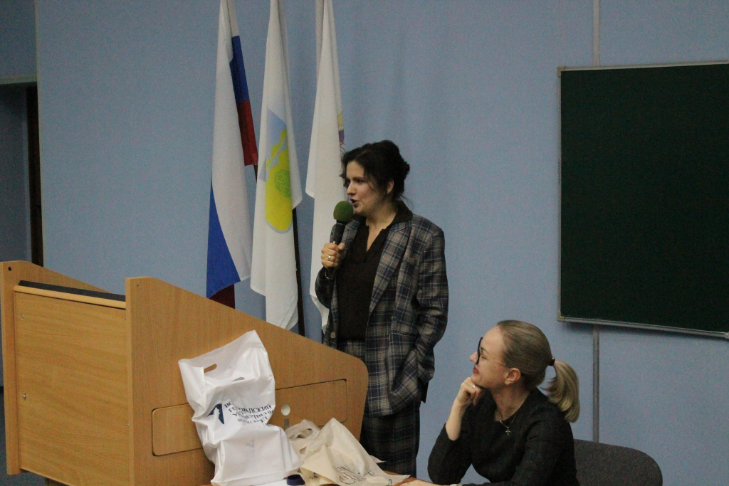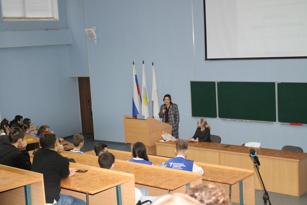 В актовом зале не нашлось свободных мест, а скептическое отношение к теме нарядов даже у парней быстро изменилось на искренний интерес, ведь успехи нашей гостьи впечатляют. Дарья Сергеевна рассказала о себе и своем непростом пути к успеху, четко обозначив позицию, что развиваться необходимо в любом возрасте, что сегодня собственное дело можно создать и продвигать в любой точке земного шара, что для того, чтобы стать личностью, необходимо работать и быть лучшим, и что Волжский – это город ее судьбы.