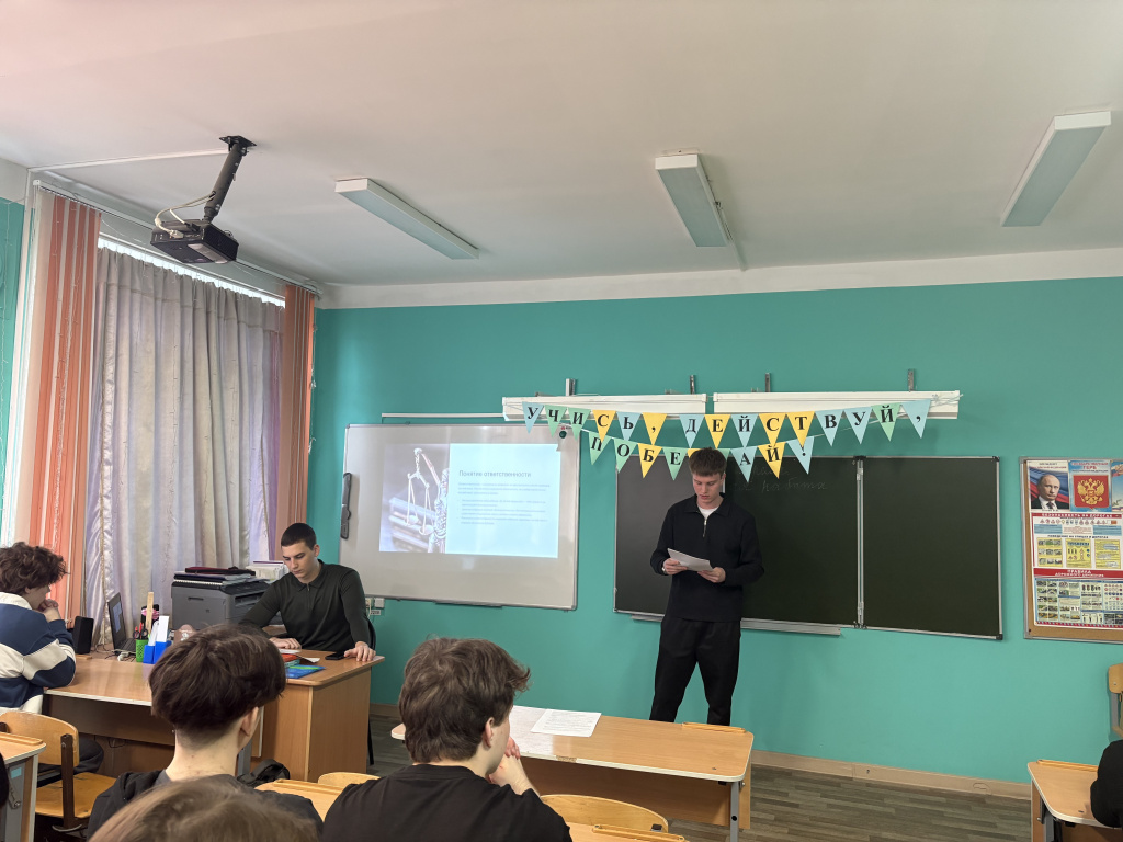 В ходе непринужденного общения студенты-юристы вместе с учащимися проанализировали основные виды ответственности: уголовную, административную, гражданско-правовую, возраст их наступления, а также юридические последствия.